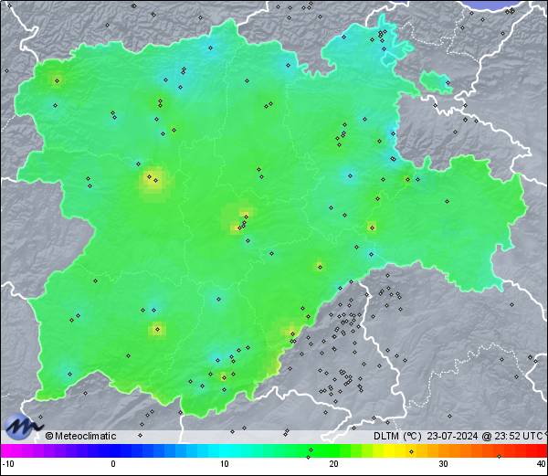 | 23-07-2024 | | | Máx. | Mín. | | | Temperatura | 29,8 | 10,6 | °C | | Humedad | 98 | 41 | % | | Viento | 25 | n/a | km/h |