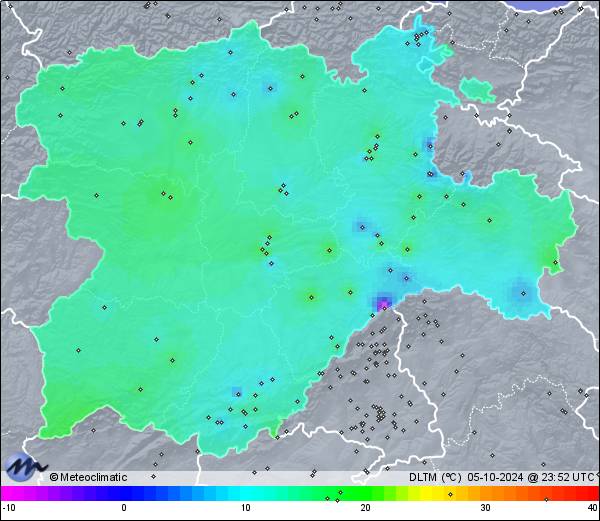 | 05-10-2024 | | | Máx. | Mín. | | | Temperatura | 16,7 | 9,1 | °C | | Humedad | 97 | 83 | % | | Viento | 24 | n/a | km/h | | Presión | 1.017 | 1.010 | hPa | | Precipitación | 3,2 | mm |