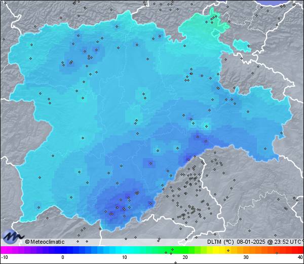 | 08-01-2025 | | | Máx. | Mín. | | | Temperatura | 9,9 | 6,1 | °C | | Humedad | 93 | 73 | % | | Viento | 38 | n/a | km/h | | Presión | 1.024 | 1.017 | hPa | | Precipitación | 0,0 | mm |