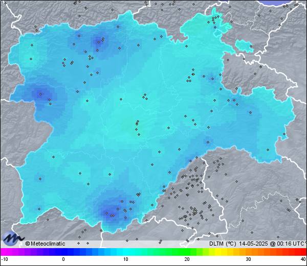 | 13-05-2025 | | | Máx. | Mín. | | | Temperatura | 14,0 | 4,8 | °C | | Humedad | 95 | 58 | % | | Viento | 32 | n/a | km/h | | Presión | 1.016 | 1.013 | hPa |