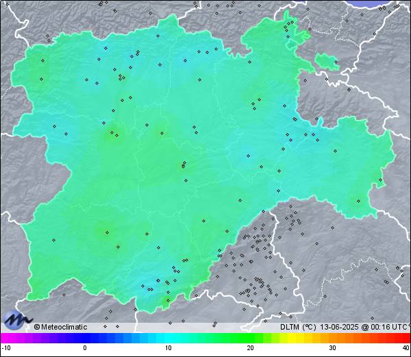 | 12-06-2025 | | | Máx. | Mín. | | | Temperatura | 13,8 | 11,1 | °C | | Humedad | 85 | 81 | % | | Viento | 8 | n/a | km/h | | Presión | 1.015 | 1.015 | hPa | | Precipitación | 0,0 | mm |
