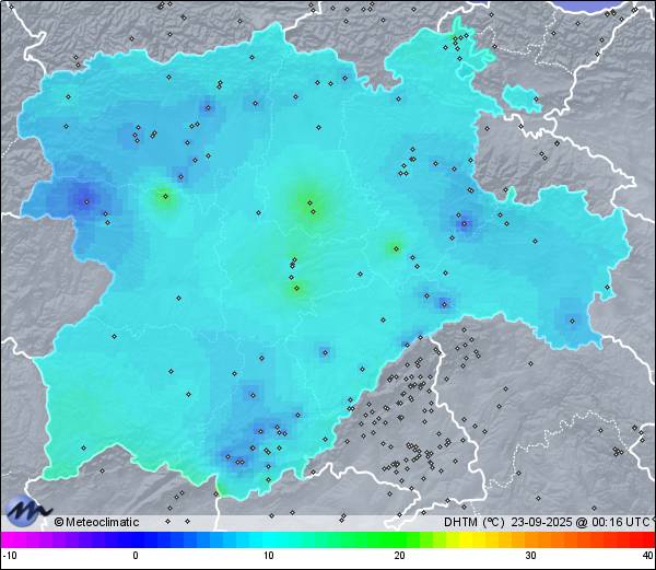 | 22-09-2025 | | | Máx. | Mín. | | | Temperatura | 15,0 | 3,7 | °C | | Humedad | 92 | 40 | % | | Viento | 37 | n/a | km/h | | Presión | 1.025 | 1.023 | hPa | | Precipitación | 0,0 | mm |