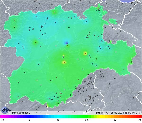 | 27-09-2025 | | | Máx. | Mín. | | | Temperatura | 20,8 | 7,1 | °C | | Humedad | 89 | 25 | % | | Viento | 15 | n/a | km/h | | Presión | 1.020 | 1.017 | hPa | | Precipitación | 1,2 | mm |
