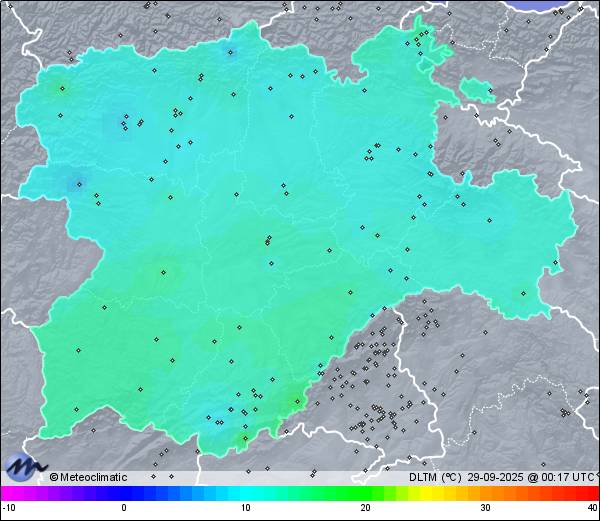 | 28-09-2025 | | | Máx. | Mín. | | | Temperatura | 18,7 | 8,6 | °C | | Humedad | 89 | 39 | % | | Viento | 44 | n/a | km/h | | Presión | 1.024 | 1.017 | hPa | | Precipitación | 0,0 | mm |