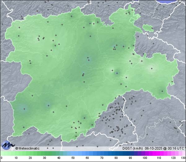 05-10-2025 | | Máx. | Mín. | | Temperatura | 18,3 | 8,8 | °C | Humedad | 94 | 33 | % | Viento | 38 | n/a | km/h | Presión | 1.024 | 1.023 | hPa | Precipitación | 0,0 | mm |