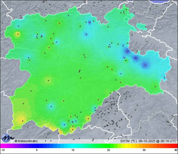 05-10-2025 | | Máx. | Mín. | | Temperatura | 13,5 | 3,0 | °C | Humedad | 98 | 60 | % | Viento | 33 | n/a | km/h |