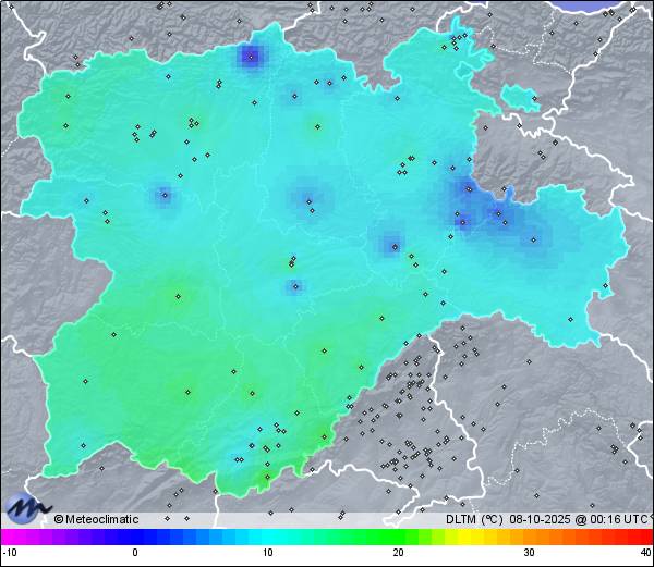 07-10-2025 | | Máx. | Mín. | | Temperatura | 12,4 | 11,3 | °C | Humedad | 80 | 74 | % | Viento | 8 | n/a | km/h | Presión | 1.022 | 1.022 | hPa | Precipitación | 0,0 | mm |
