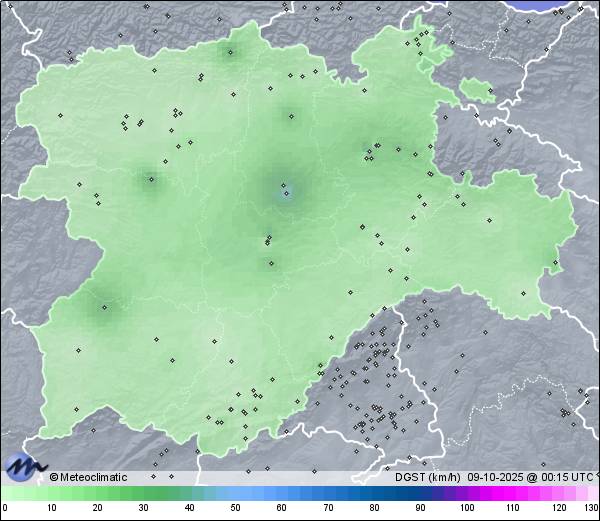 08-10-2025 | | Máx. | Mín. | | Temperatura | 25,8 | 7,6 | °C | Humedad | 97 | 40 | % | Viento | 30 | n/a | km/h | Presión | 1.027 | 1.024 | hPa | Precipitación | 0,0 | mm |