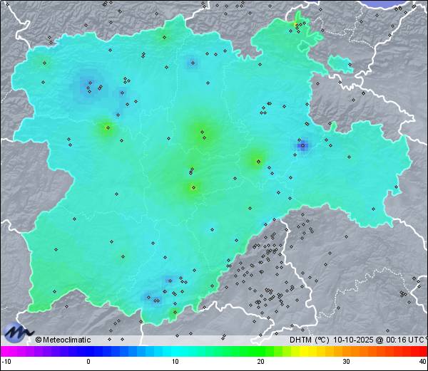 09-10-2025 | | Máx. | Mín. | | Temperatura | 17,7 | 6,8 | °C | Humedad | 94 | 53 | % | Viento | 42 | n/a | km/h | Presión | 1.027 | 1.024 | hPa | Precipitación | 0,0 | mm |