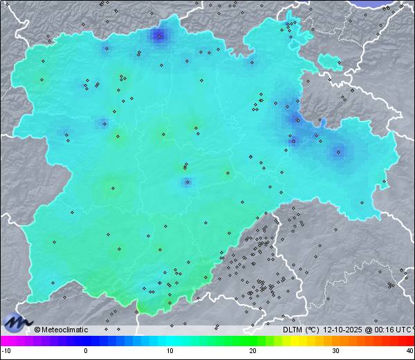 | 11-10-2025 | | | Máx. | Mín. | | | Temperatura | 18,7 | -0,6 | °C | | Humedad | 92 | 50 | % | | Viento | 7 | n/a | km/h | | Presión | 1.028 | 1.024 | hPa | | Precipitación | 0,0 | mm |