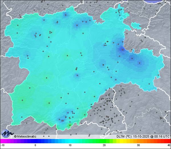 14-10-2025 | | Máx. | Mín. | | Temperatura | 9,6 | 7,9 | °C | Humedad | 85 | 84 | % | Viento | 10 | n/a | km/h | Presión | 1.019 | 1.019 | hPa | Precipitación | 0,0 | mm |
