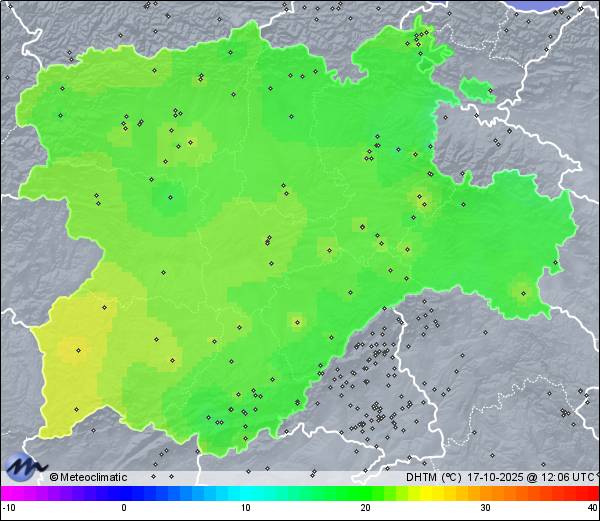 Actualizado: 10:03 UTC | 15,1°C 69% | 15,1 °C / 87% | 8,1°C / 69% | 1.018 hPa |