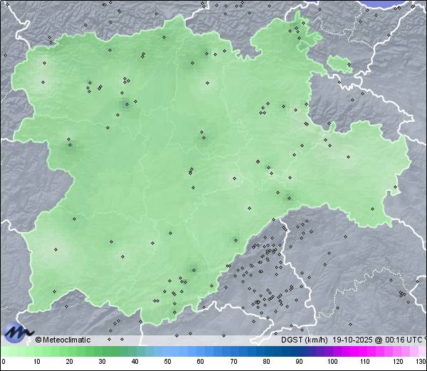 18-10-2025 | | Máx. | Mín. | | Temperatura | 23,7 | 6,0 | °C | Humedad | 96 | 32 | % | Viento | 19 | n/a | km/h | Precipitación | 0,2 | mm |
