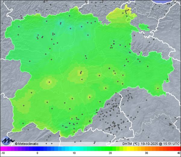 Actualizado: 13:19 UTC | 17,9°C 64% | 18,9 °C / 80% | 13,9°C / 53% | 1.012 hPa | 0,8 mm |