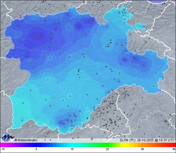 | Actualizado: 16:18 UTC | 10,3°C 62% | 11,2 °C / 96% | | 2,2°C / 56% | | 3 km/h E | | 27 km/h | | 1.019 hPa | | 0,4 mm |