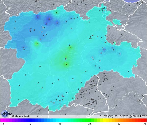 | Actualizado: 16:33 UTC | 12,3°C 88% | 14,3 °C / 95% | | 6,4°C / 61% | | Calma | | 11 km/h | | 1.007 hPa | | 3,6 mm |
