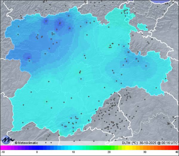 | Actualizado: 16:34 UTC | 12,9°C 85% | 15,0 °C / 95% | | 6,7°C / 75% | | Calma | | 32 km/h | | 1.008 hPa | | 2,4 mm |