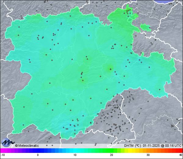 | 16,8 °C / 95% |  | 8,2°C / 67% |  |  | Calma |  | 5 km/h |  | 1.013 hPa |  | 5,8 mm |