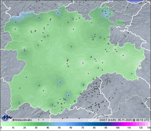 | Actualizado: 16:41 UTC | 21,4°C 50% | 23,1 °C / 100% | | 4,8°C / 31% | | 6 km/h ESE | | 40 km/h | | 1.013 hPa |