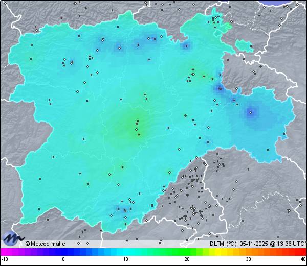 | Actualizado: 03:31 UTC | 8,6°C 87% | 9,8 °C / 91% |  | | 7,2°C / 81% | | 3 km/h N | | 11 km/h | | 1.013 hPa |