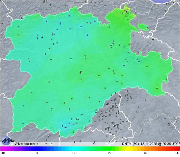 | Actualizado: 18:58 UTC | 14,3°C 86% | 15,9 °C / 94% | | 11,9°C / 56% | | 12 km/h S | | 30 km/h | | 1.009 hPa | | 13,2 mm |