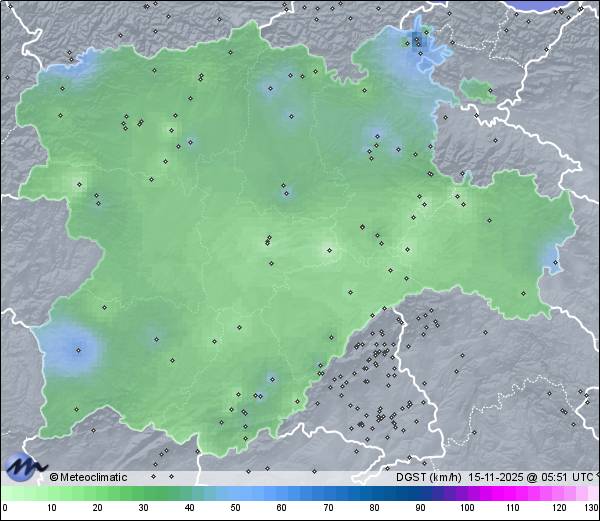 | Actualizado: 03:17 UTC | 6,7°C 90% | 6,8 °C / 92% | | 5,9°C / 88% | | 13 km/h E | | 46 km/h | | 1.010 hPa |