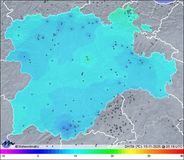 | Actualizado: 02:59 UTC | 6,7°C 95% | 15,6 °C / 95% | | 6,5°C / 59% | | Calma | | 15 km/h | | 1.003 hPa |