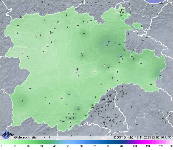| Actualizado: 00:30 UTC | 5,7°C 93% | 6,3 °C / 93% |  | | 5,7°C / 92% | | 1 km/h ENE | | 17 km/h | | 1.016 hPa |