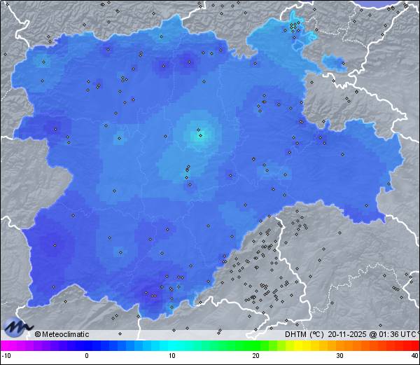 | Actualizado: 00:17 UTC | 7,5°C 94% | 10,4 °C / 94% | | 7,3°C / 76% | | 3 km/h S | | 32 km/h | | 1.020 hPa | | 1,8 mm |
