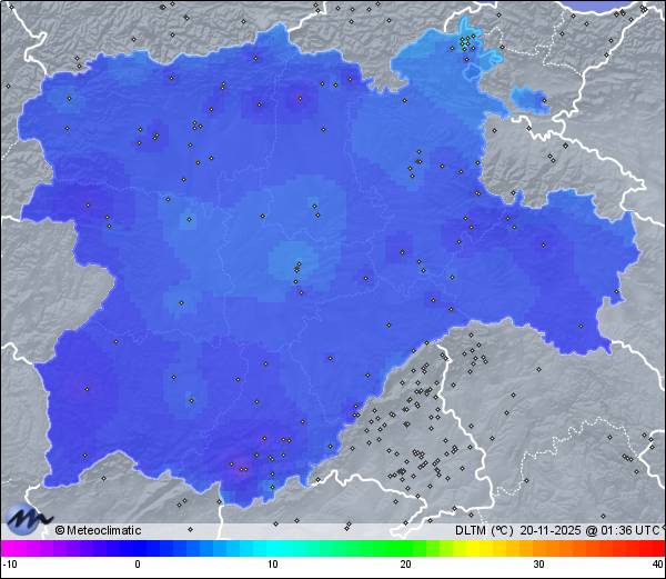 | Actualizado: 00:19 UTC | 4,9°C 82% | 5,2 °C / 84% | | 4,7°C / 82% | | 1.020 hPa |