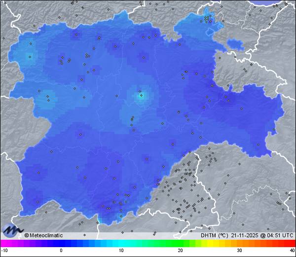 | Niebla heladora | | Actualizado: 03:58 UTC | -0,9°C 97% | 0,5 °C / 99% | | -0,9°C / 93% | | Calma | | 0 km/h |