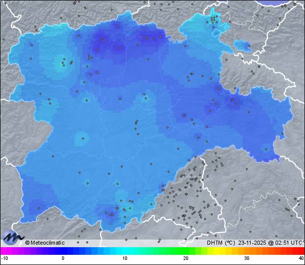| Actualizado: 01:45 UTC | 5,6°C 83% | 5,7 °C / 83% | | 5,4°C / 78% | | 1.028 hPa |