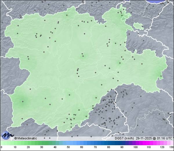 | Actualizado:28-11-2025 23:48 UTC | 2,9°C 89% | 3,4 °C / 90% | | 2,6°C / 87% | | 8 km/h N | | 16 km/h |