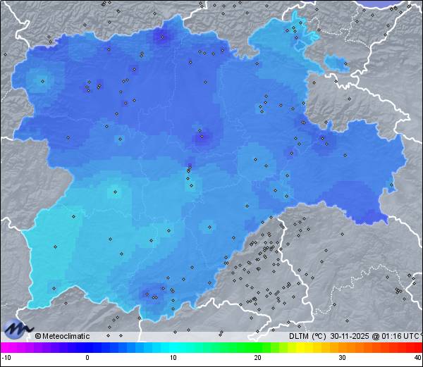 | Actualizado: 00:29 UTC | 7,0°C 85% | 7,0 °C / 86% | | 6,8°C / 85% | | 1.014 hPa |