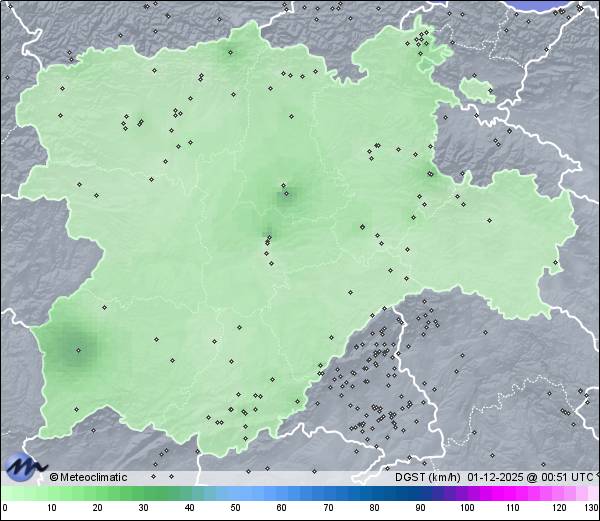 | Actualizado:30-11-2025 23:45 UTC | 6,6°C 92% | 12,6 °C / 92% | | 6,6°C / 74% | | 6 km/h E | | 41 km/h | | 1.023 hPa |
