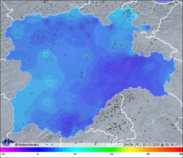 | Actualizado:01-12-2025 23:45 UTC | 6,9°C 73% | 9,5 °C / 95% | | -2,3°C / 67% | | 1.018 hPa |