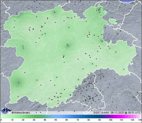 | Actualizado:07-12-2025 23:45 UTC | 8,4°C 93% | 13,2 °C / 95% | | 8,3°C / 79% | | Calma | | 23 km/h | | 1.023 hPa |
