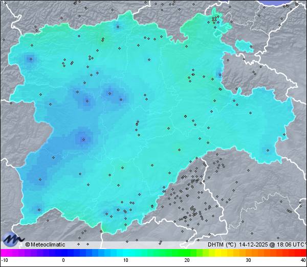 | Actualizado: 10:58 UTC | 9,7°C 69% | 9,7 °C / 98% | | -2,0°C / 69% | | Calma | | 15 km/h | | 1.029 hPa |