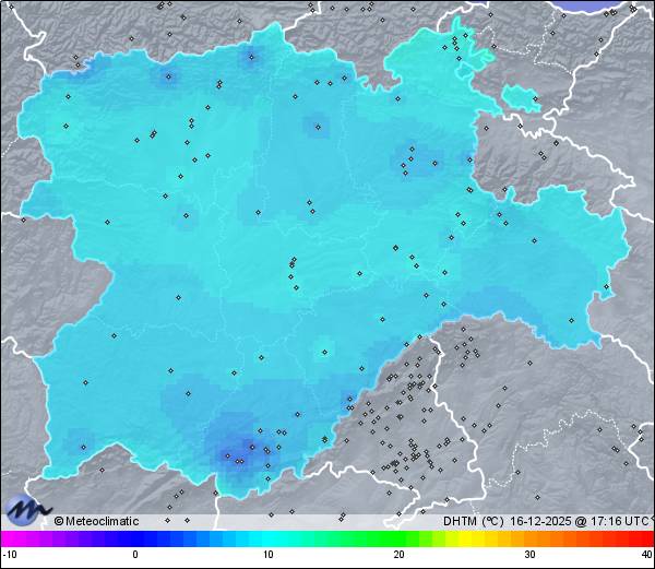 | Actualizado: 09:13 UTC | 6,2°C 95% | 6,2 °C / 99% | | 4,3°C / 93% | | 9 km/h NE | | 26 km/h | | 1.010 hPa | | 0,5 mm |