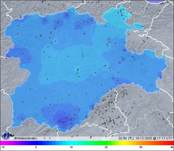 | Actualizado: 09:03 UTC | 5,7°C 94% | 5,7 °C / 96% | | 4,3°C / 94% | | 3 km/h ESE | | 6 km/h | | 0,2 mm |
