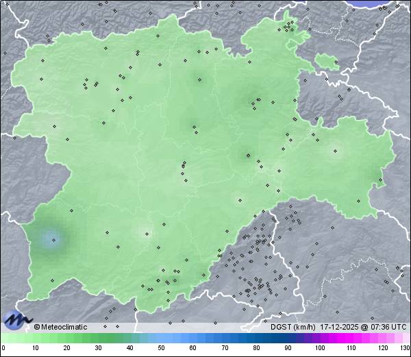 | Actualizado: 05:57 UTC | 7,2°C 92% | 7,5 °C / 93% | | 7,1°C / 91% | | 3 km/h ESE | | 17 km/h | | 1.023 hPa | | 0,2 mm |
