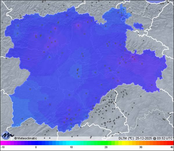 | Actualizado: 01:59 UTC | 3,9°C 95% | 3,9 °C / 99% | | 1,1°C / 95% | | Calma | | 0 km/h | | 1.012 hPa |