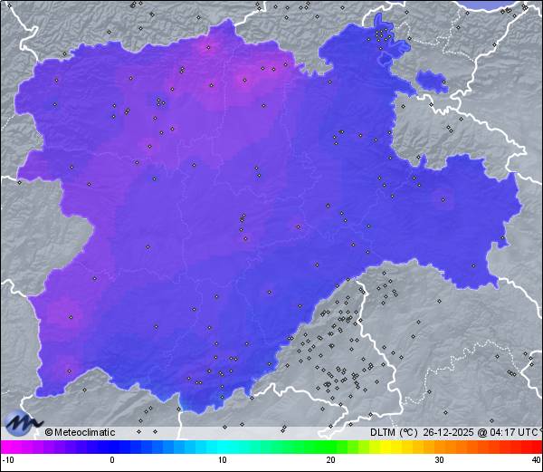 | Niebla heladora | | Actualizado: 02:02 UTC | -1,2°C 96% | 0,0 °C / 96% |  | | -1,3°C / 92% | | Calma | | 4 km/h | | 1.008 hPa |