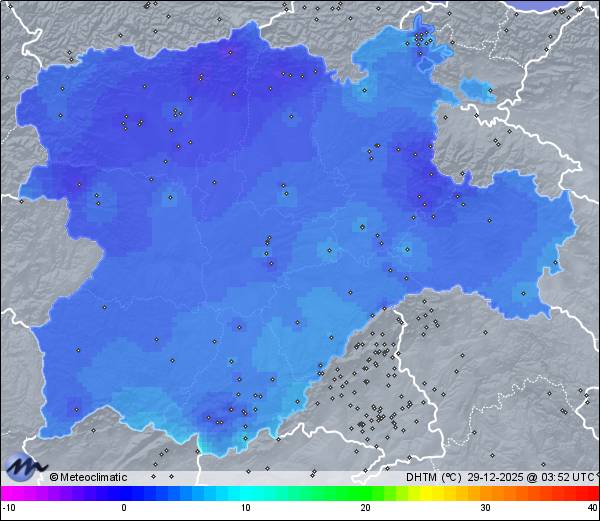 | Niebla heladora | | Actualizado: 01:49 UTC | -2,5°C 96% | -2,2 °C / 96% | | -2,9°C / 95% | | Calma | | 2 km/h | | 1.009 hPa |