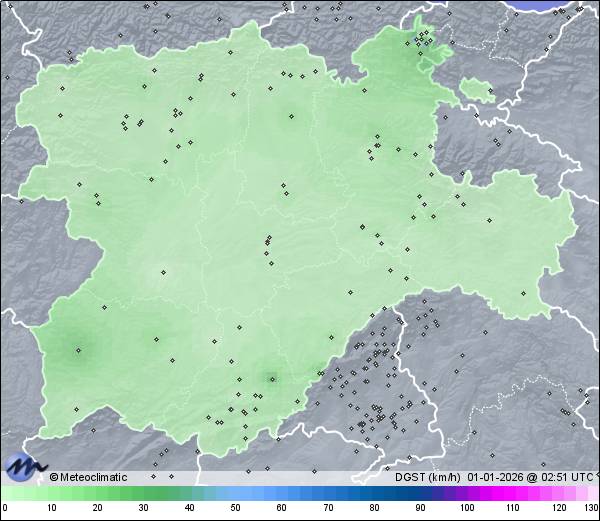 | Escarcha | | Actualizado: 01:01 UTC | 1,9°C 97% | 2,7 °C / 97% |  | | 1,9°C / 96% | | Calma | | 2 km/h | | 1.018 hPa |