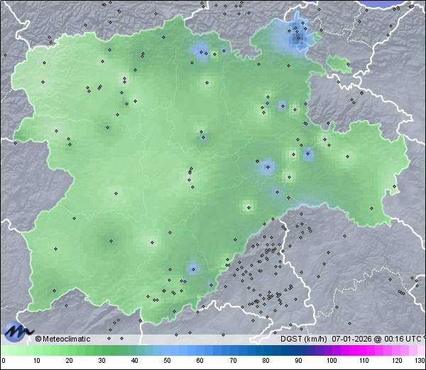 | 06-01-2026 | | | Máx. | Mín. | | | Temperatura | 0,9 | -7,7 | °C | | Humedad | 99 | 61 | % | | Viento | 46 | n/a | km/h |