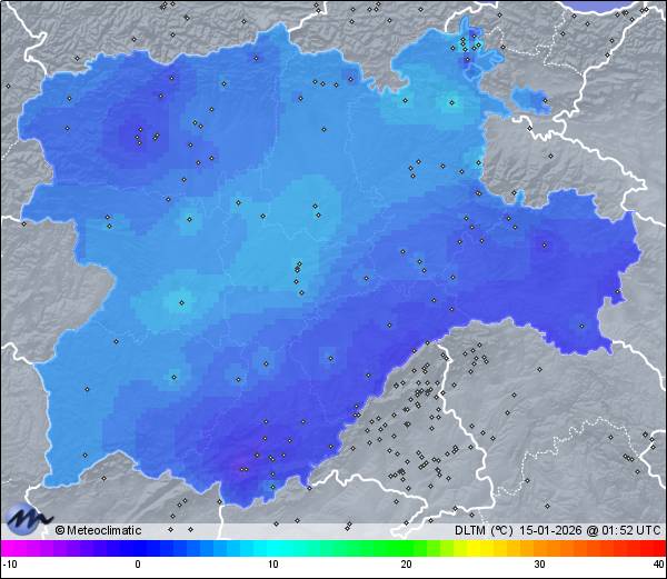 | Actualizado: 00:26 UTC | 5,5°C 87% | 5,7 °C / 87% | | 5,5°C / 86% |