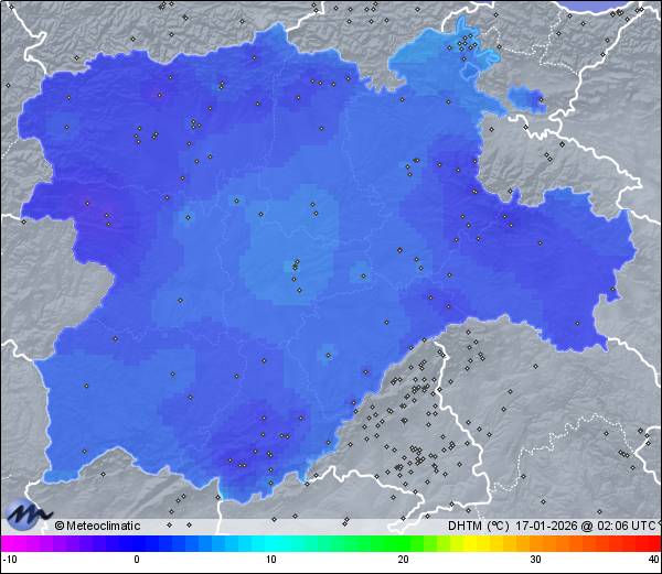 | Niebla heladora | | Actualizado: 00:16 UTC | 0,3°C 96% | 0,9 °C / 96% | | 0,2°C / 96% | | Calma | | 2 km/h |