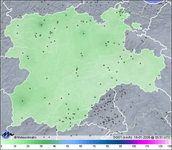 | Actualizado: 01:29 UTC | 6,5°C 90% | 9,6 °C / 91% | | 6,5°C / 74% | | 2 km/h E | | 13 km/h | | 1.014 hPa | | 0,5 mm |