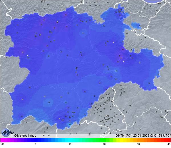 | Niebla heladora | | Actualizado: 00:20 UTC | 0,0°C 96% | 1,3 °C / 96% | | -0,1°C / 95% | | Calma | | 2 km/h | | 1.019 hPa |